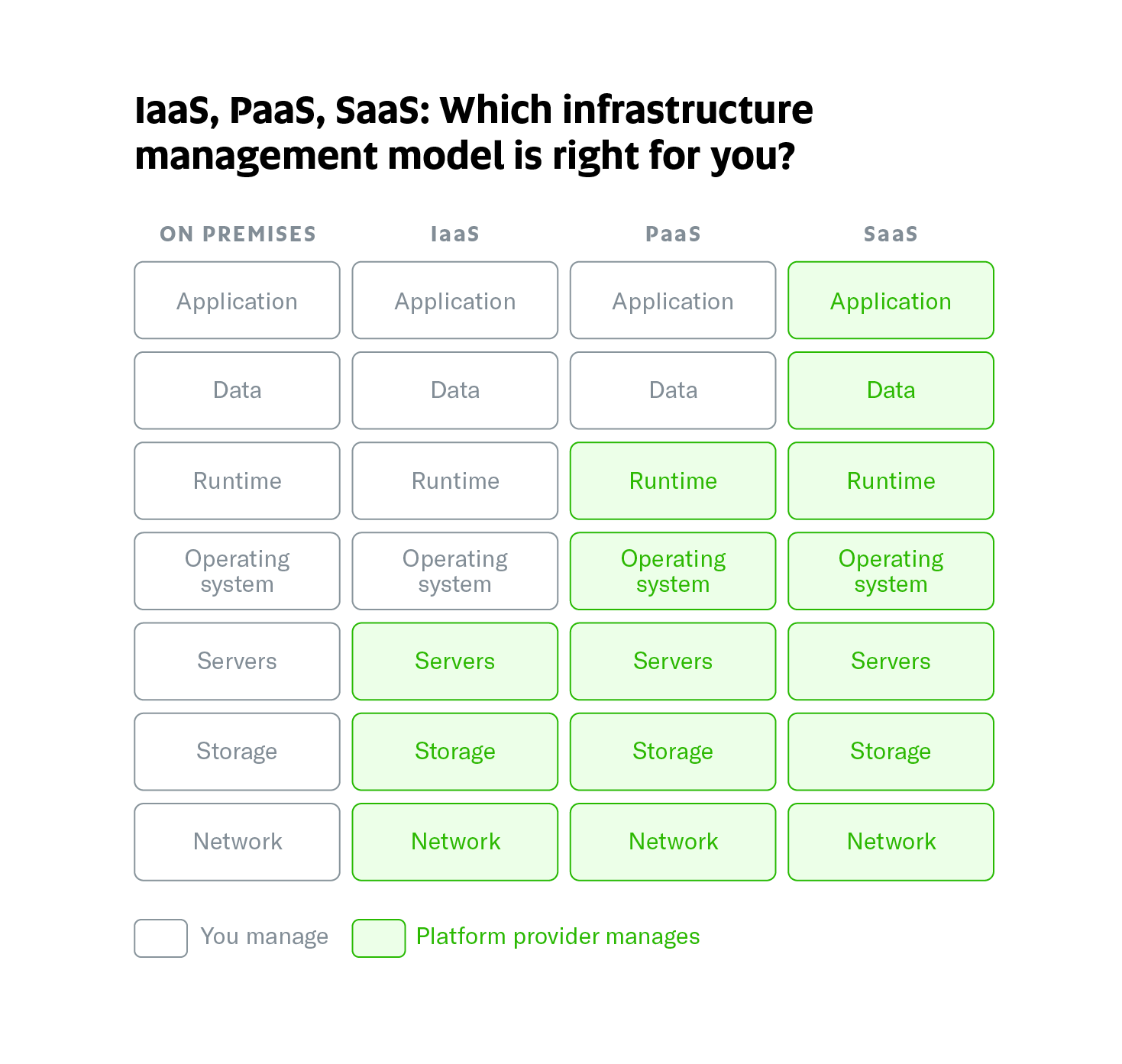 Confused about which infrastructure components you need to manage and when? Here’s a helpful diagram: