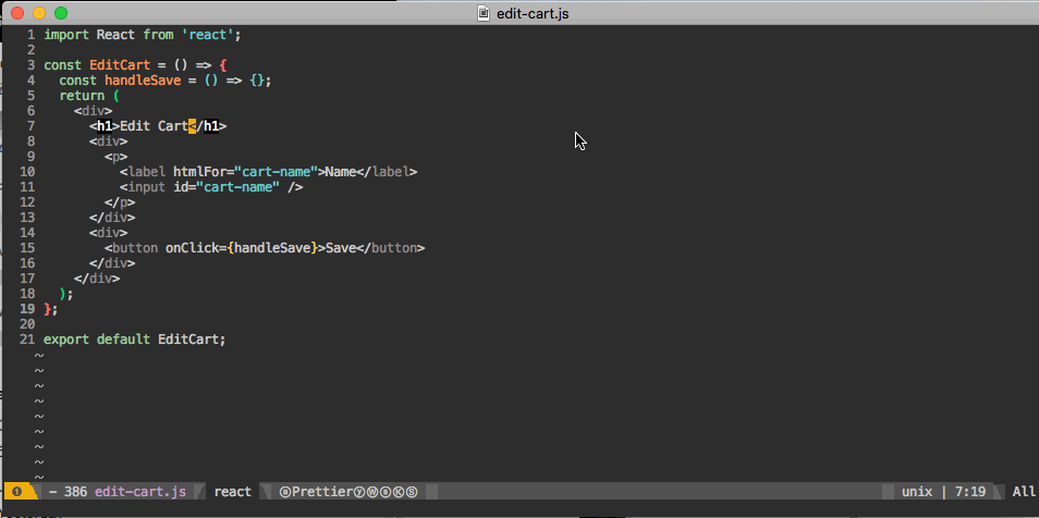 The process for adding a string to the UI could be expressed as a series of Emacs commands. Before, I could highlight a string in visual mode and have the translation open in a buffer. Now I wanted to be able to highlight the string in visual mode, run a command, and have the following actions performed: